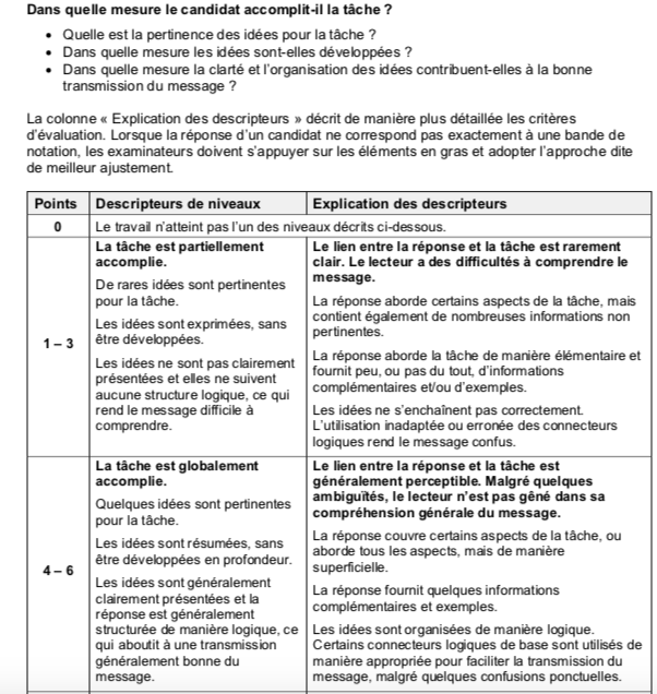 Ceci dit - les Crit A et C - ne sont pas impactés - donc notez selon le Critère de notation. l'élève n'est pas complètement hors sujet - il tente de répondre à la tâche