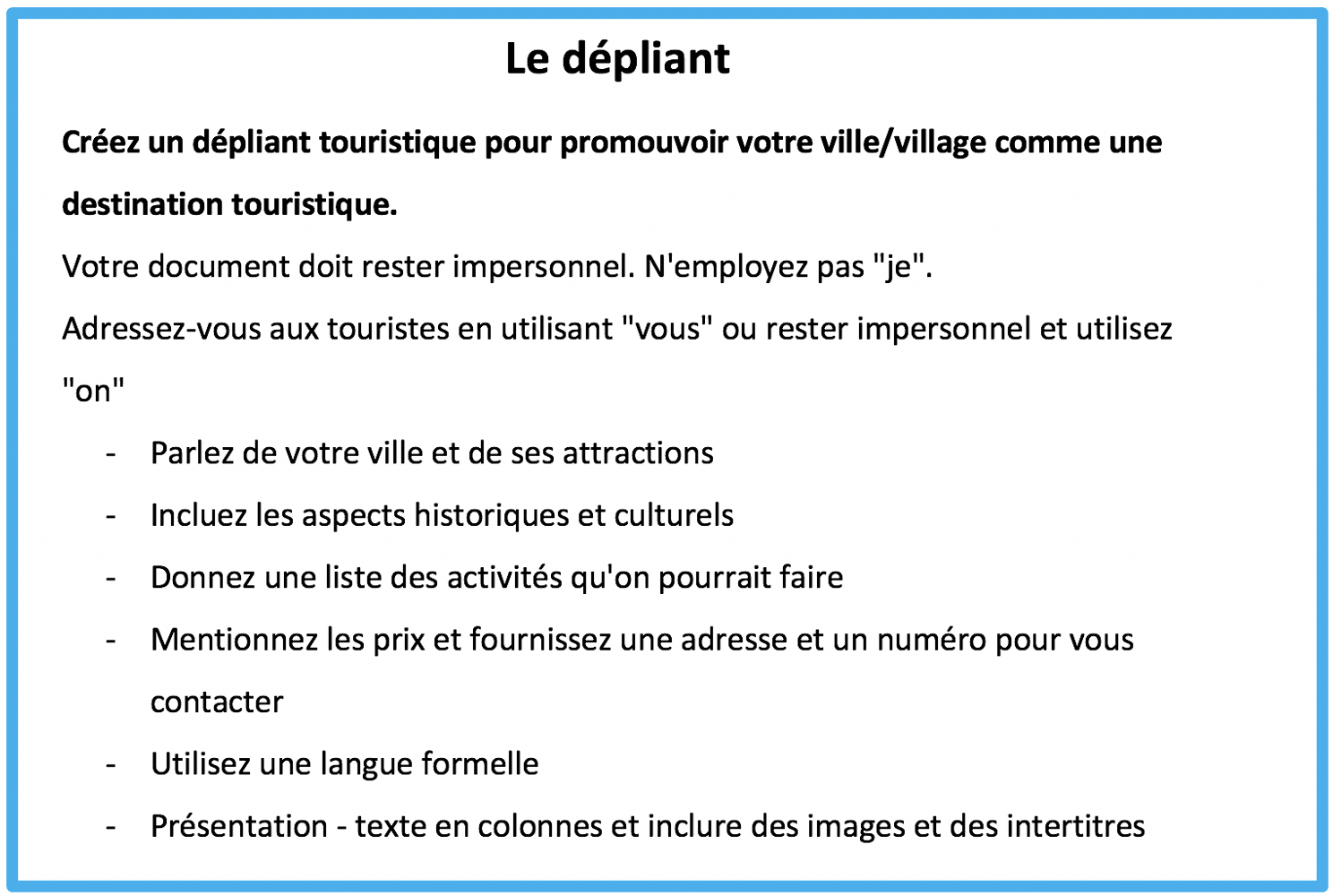 Source : Tricolore Total 4, Nelson Thornes, extrait de l'Unité 2.