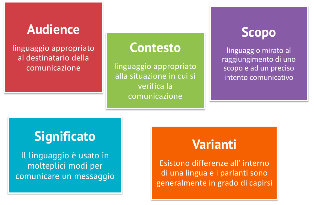 Conceptual understanding Gli studenti comprendono che il linguaggio dovrebbe essere appropriato per il raggiungimento di una precisa intenzione, obiettivo o risultato