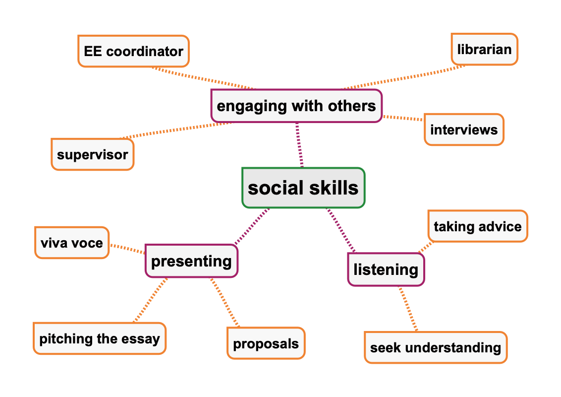 After comparing your results to the mind maps provided below, discuss how you plan to develop these skills throughout the EE journey. What kinds of habits will help you develop these skils? How will you track your skill development in your Researcher's Reflection Space (RRS) or notebook?
