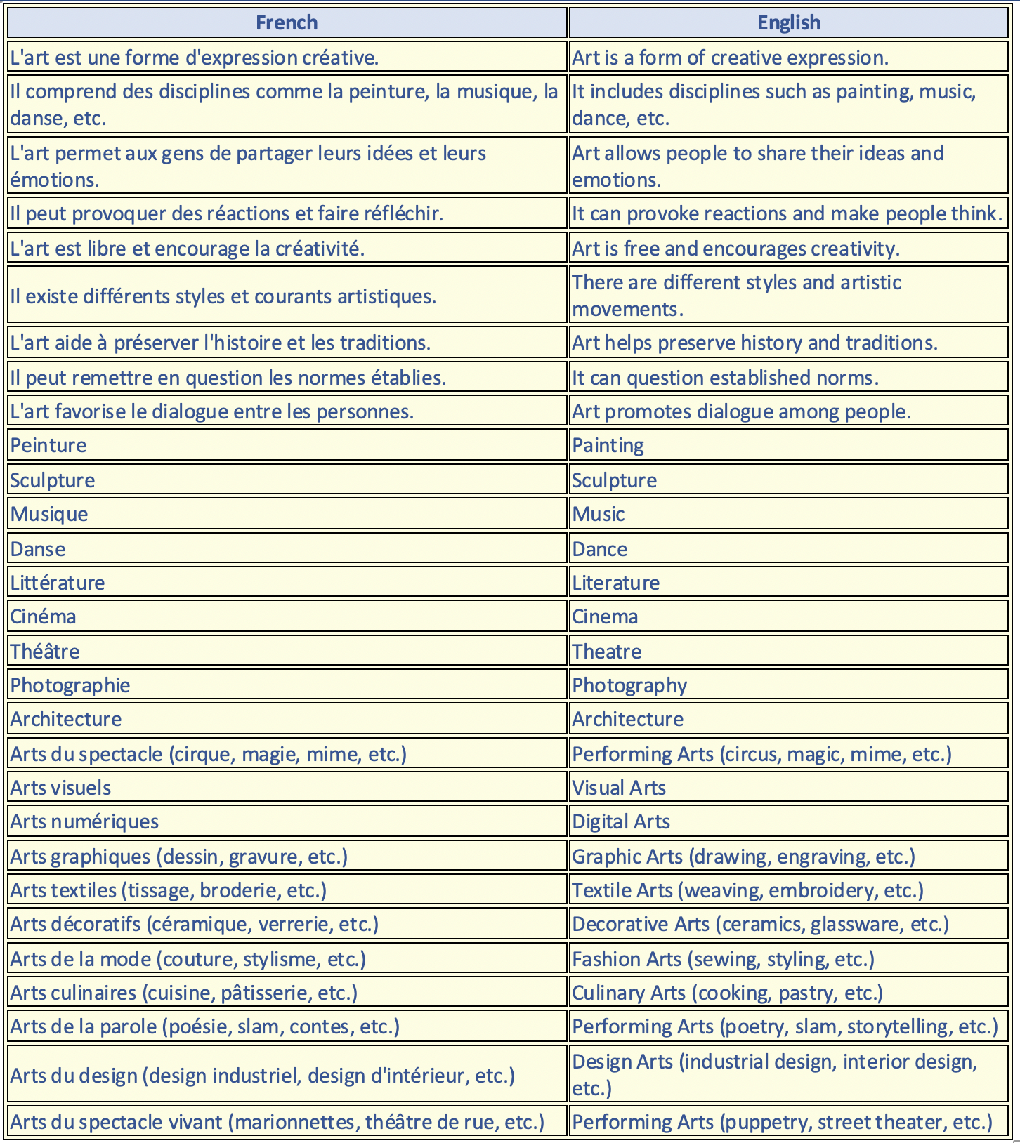 1. Function of art / Fonction de l'art: French: Dans quelle mesure l'art joue-t-il un rôle dans notre compréhension du monde et de nous-mêmes ? English: To what extent does art play a role in our understanding of the world and ourselves?