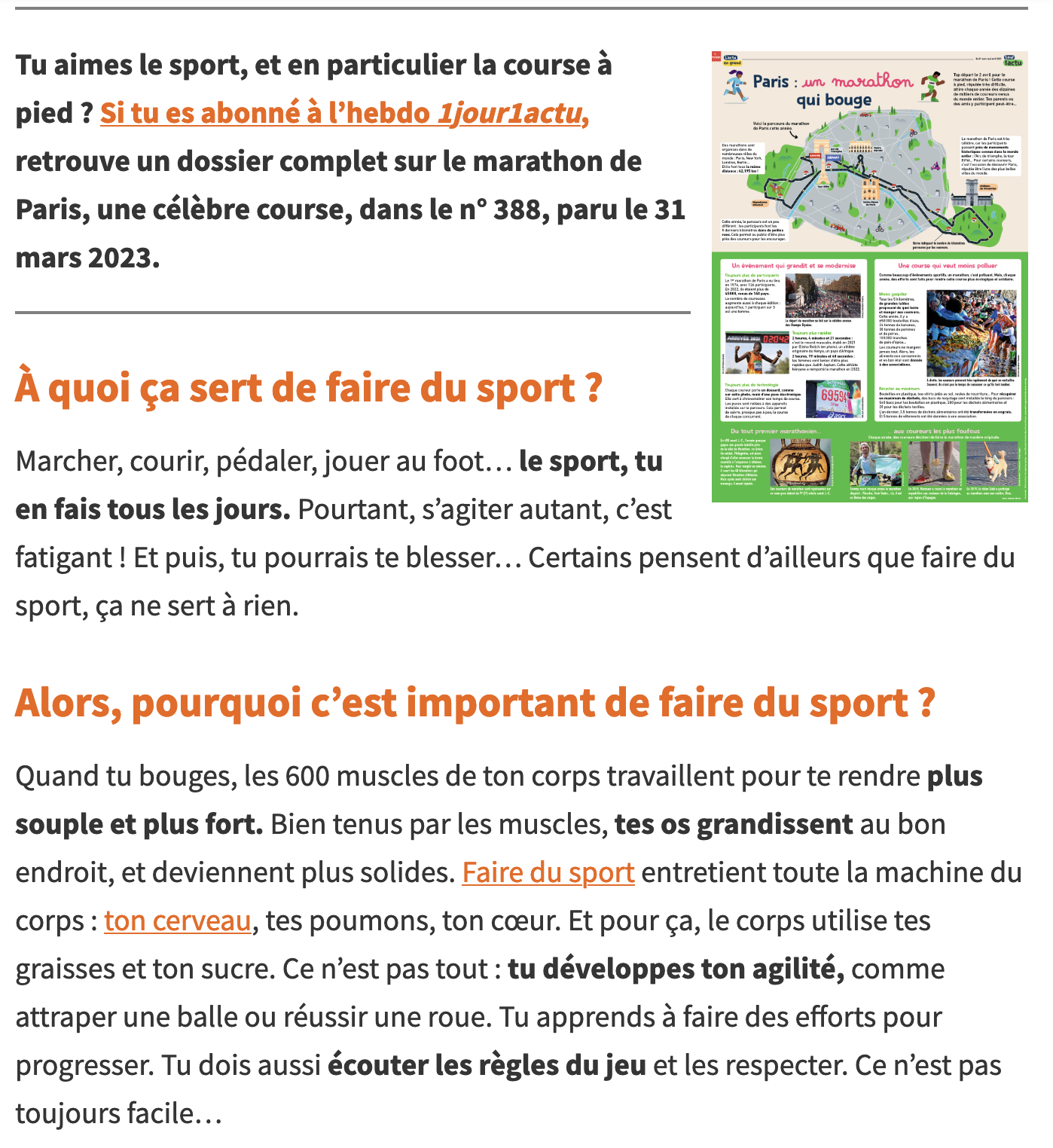 2024, c’est l’année du sport ! À l’occasion des Jeux olympiques de Paris, les écoles primaires sont incitées à suivre le programme « 30 minutes d’activité physique quotidienne » mis en place par l’Éducation nationale. Pour connaître tous les bienfaits du sport, regarde cette vidéo !