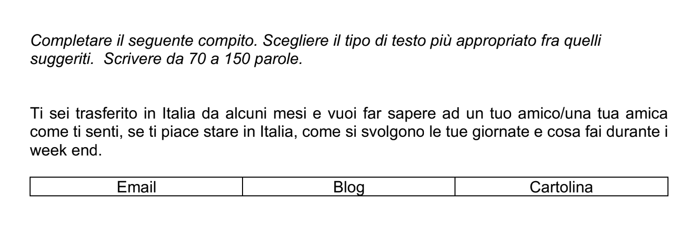 l giorno dell’ esame valuta con attenzione le tre tipologie di testo suggerite per ciascuna traccia: qual è la più adatta? Su quale ti senti più sicuro? Anche per l’ argomento, non scegliere solo quello che ti piace di più ma valuta se hai sufficienti argomentazioni da presentare e sei conosci bene il vocabolario tematico.